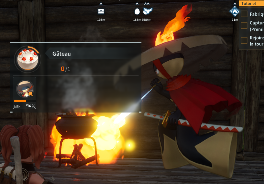 fabriquez le gâteau dans la marmite, et trouvez un pal avec la capacité allumage pour vous aider, car le gâteau met une trentaine de minutes a finir si votre pal a Allumage 1. Pour Une petite dizaine de minutes, utilisez Jormuntide Ignis ou un autre pal avec Allumage 4. Allumage 3 prend un peu plus de temps que allumage 4, une vingtaine de minutes.