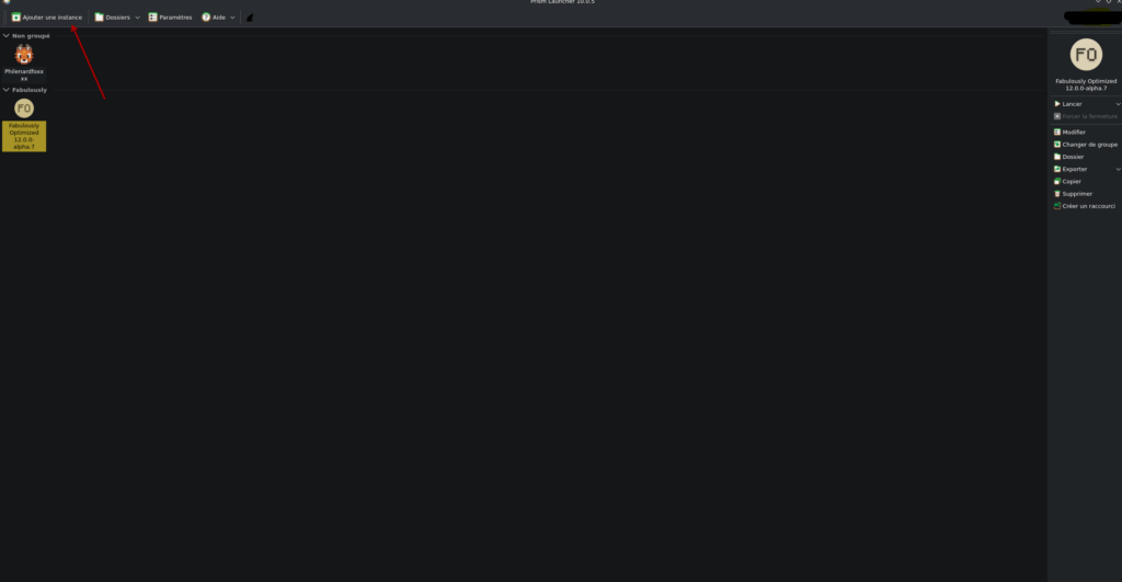 Sur le launcher prism, vous pouvez installer des mods pour minecarft. Quand vous aurez installé prism et que vous aurez un compte, il faudra tout d’abord créer une instance. ( Pour installer des mods ou des packs, il est préféable que vous sachiez déjà ce que vous voulez installer !!! ) donc pour crée une instance il faudra simplement cliquer sur le bouton « créer une instance » en haut a droite puis suivre ces instructions :