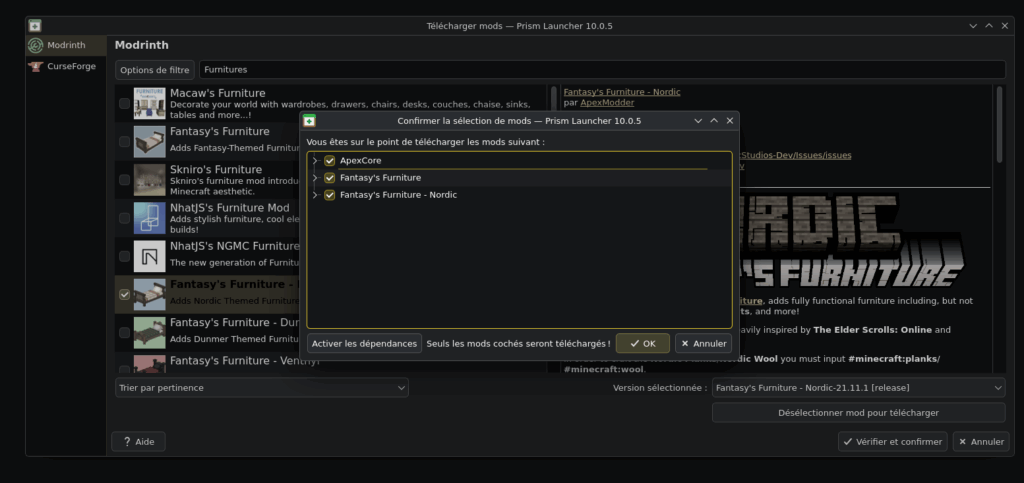 Maintenant un selecteur a été ouvert ! vous pouvez choisir le mod/pack que vous voulez.