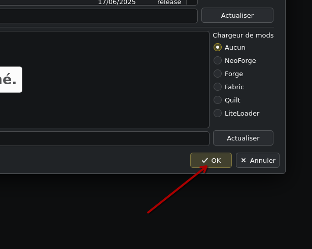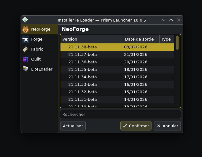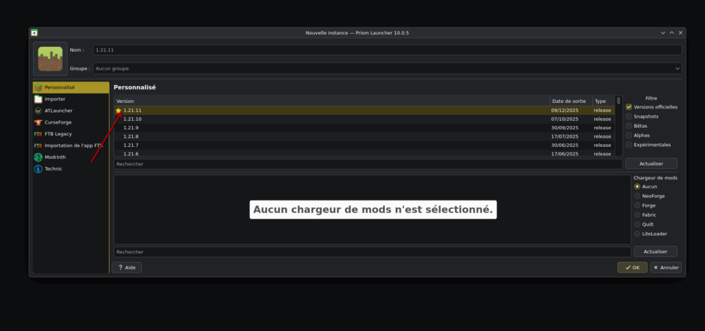 Choisissez le chargeur de mod ( je prends NeoForge ) :