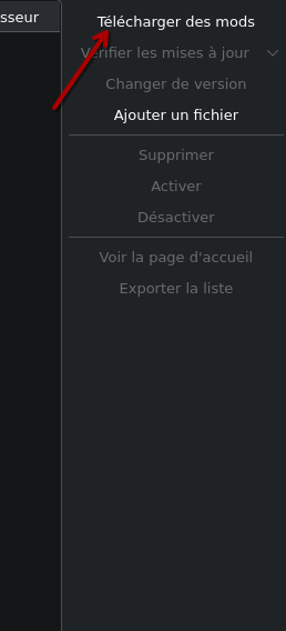 Cliquez sur « mods » ou « Packs » sur la droite de l’écran :